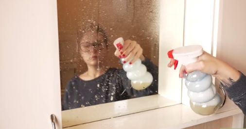 2、自制玻璃清潔劑。雖然等量的醋和水就足以應付大部分的鏡子了,但有時你可能得使用更加強效的清潔劑。這種情況下,你可以在干凈的容器中調(diào)配出自己的玻璃清潔劑,然后把它倒入干凈的噴瓶里。混合以下原料,自制強效清潔劑: