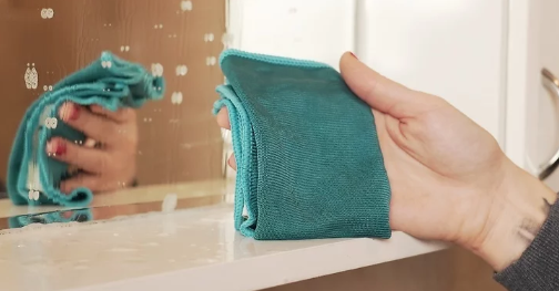 不要使用紙巾,否則容易在鏡子上留下細小的紙屑。