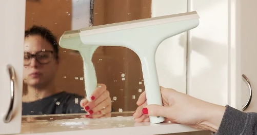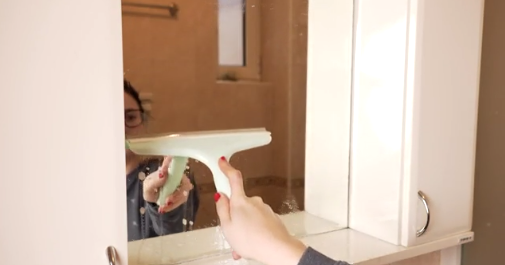 3、使用橡皮刮擦拭鏡子。如果你有橡皮刮,可以用它清潔鏡子,它的效果很好。每刮一次,你就應該用超細纖維布擦去所有水滴。
